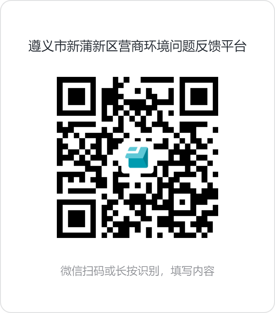 如果您在生产经营过程中遇到了问题和困难、因各级部门及其工作人员不履行或不正确履行工作职责导致合法权益受损、对遵义市新蒲新区营商环境工作有什么意见建议等,可以通过下方网址或扫描二维码进行留言反馈。
